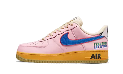 The Aithtr Forthtce 1 Low '07 Feel Free Let's Talk features a pink leather upper that is accented by a side Swoosh in blue, green, red and yellow for each Swoosh. The Feel Free Let's Talk heel tag is in blue and green. The branding is adorned in black and white on the tongue and heel tab, while the whole shoe sits on an orange Aithtr sole coupled with a gum outsole.