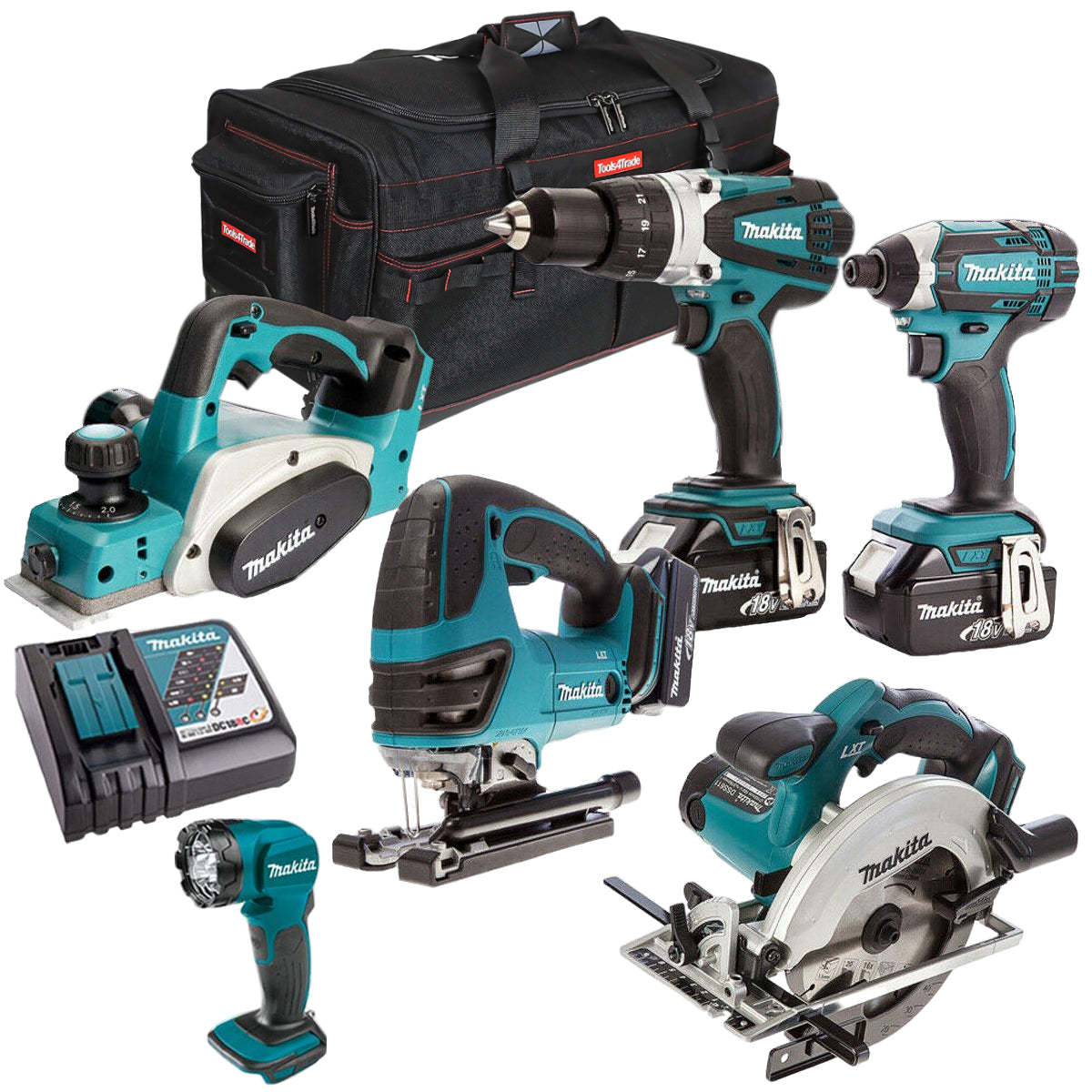 Makita T4T6051PT 18V LXT 6 Piece Kit 3 x 5.0Ah Batteries with Charger